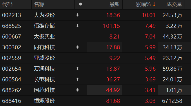 存储芯片概念股表现活跃 大为股份涨停