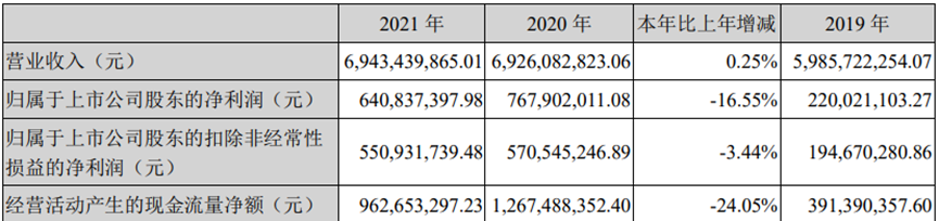 4月18日晚间,三全食品发布了2021年财报,报告期内公司实现营收69.43亿元,同比增长0.25%;但净利润同比减少16.55%至6.41亿元。2020年净利润暴涨导致基数过高,是导致三全食品进入2021年后利润下滑的主要原因。2020年上半年,三全食品净利润曾高达4.52亿元,同比暴增409%。
