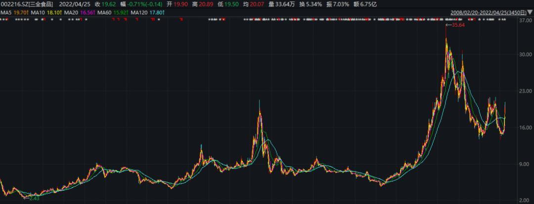 三全食品上市以来的股价走势(元)