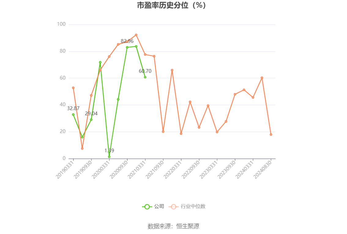 市盈率为负时,不显示当期分位数,会导致折线图中断。
