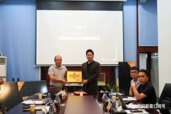 深圳市新能源行业协会秘书长孙思源、深圳市新能源汽车产业协会执行秘书长翁天送、深圳市车联网行业协会执行秘书长金慧华、深大会秘书长招祥骏、深圳大学技术转化中心助理主任/概念验证中心主任魏兴华、深圳市银行业协会秘书长王宇彪等深圳相关行业协会以及新能源行业二十余家企业到访拓日新能开展光伏行业合作交流。拓日新能总裁杨国强、副总经理陈嘉豪对企业家们到来表示热烈欢迎。期间,深圳市新能源行业协会秘书长孙思源给拓日新能颁发副会长单位牌匾。