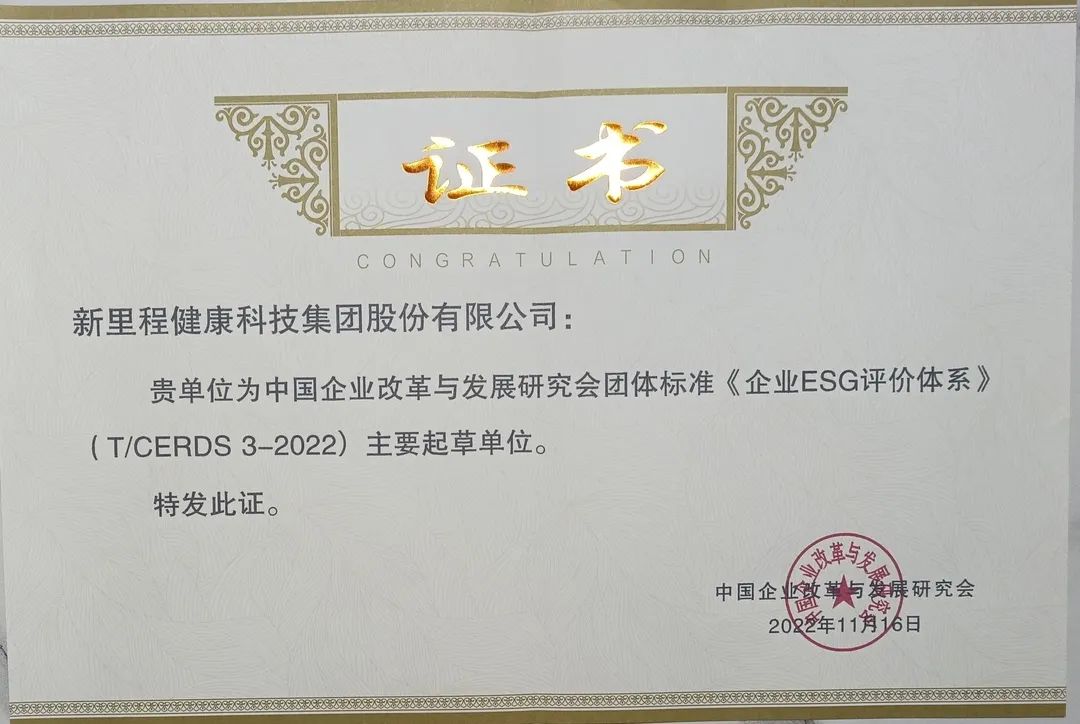 新里程股份与各行业的领军企业们一道积极参与,在借鉴国际先进ESG评价方法的基础上,结合中国具体国情,研究制定本土化的企业ESG评价体系,着力于构建能够反映企业ESG表现的标准化指标,为ESG评价提供了一个有序可行的组织化框架,共同推动《企业ESG评价体系》团体标准的面世。参与起草的各方希望为各行业和监管部门提供评价指南和依据,激励企业进行绿色低碳转型,推动中国经济社会的高质量发展。