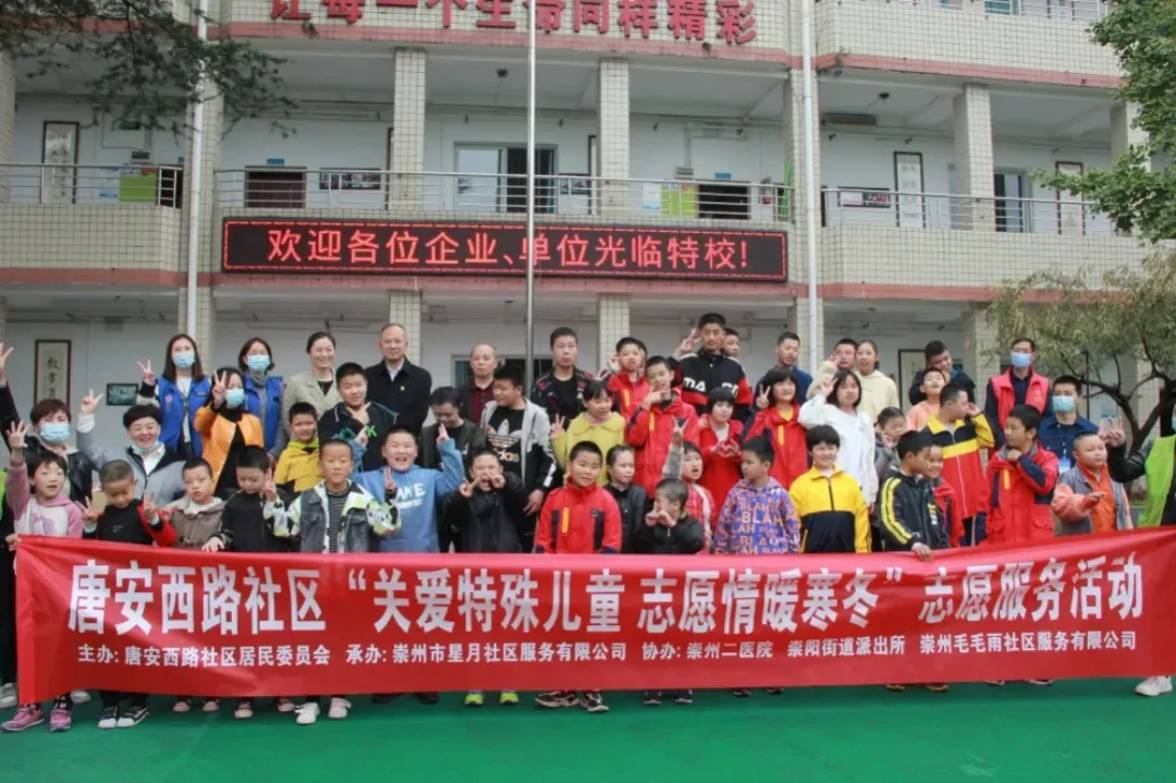 崇州二医院参加“关爱特殊儿童志愿情暖寒冬”志愿服务活动,向特殊儿童捐赠拖鞋、手套、图书等学习生活用品。