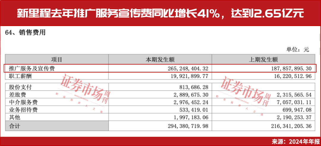 相较于较低的研发费用投入,新里程的销售费用较高。2023年、2024年,新里程的销售费用分别达到2.04亿元、2.94亿元,占同期营收的比例为5.7%、7.7%。较高的销售费用一定程度上压缩了利润空间。