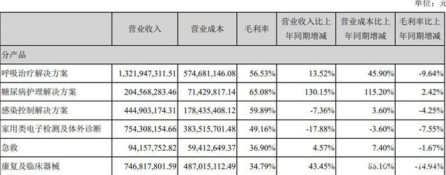 从营收看,鱼跃医疗大部分板块仍然有很明显的增长,但是问题在于毛利率整体下滑较为明显。