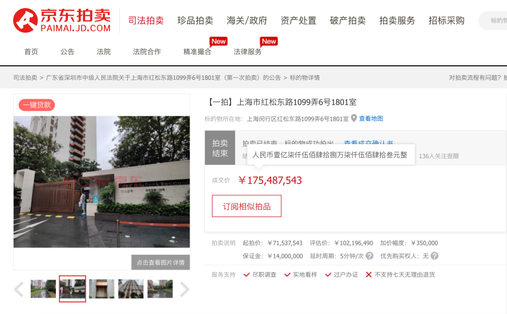 11月16日,一家名为上海卫生材料厂有限公司的企业以人民币1.75487543亿元拍下该房产。而上海卫生材料厂有限公司也确实并非鱼跃医疗子公司,而是鱼跃医疗实控人吴光明/吴群父子所控制的关联公司。