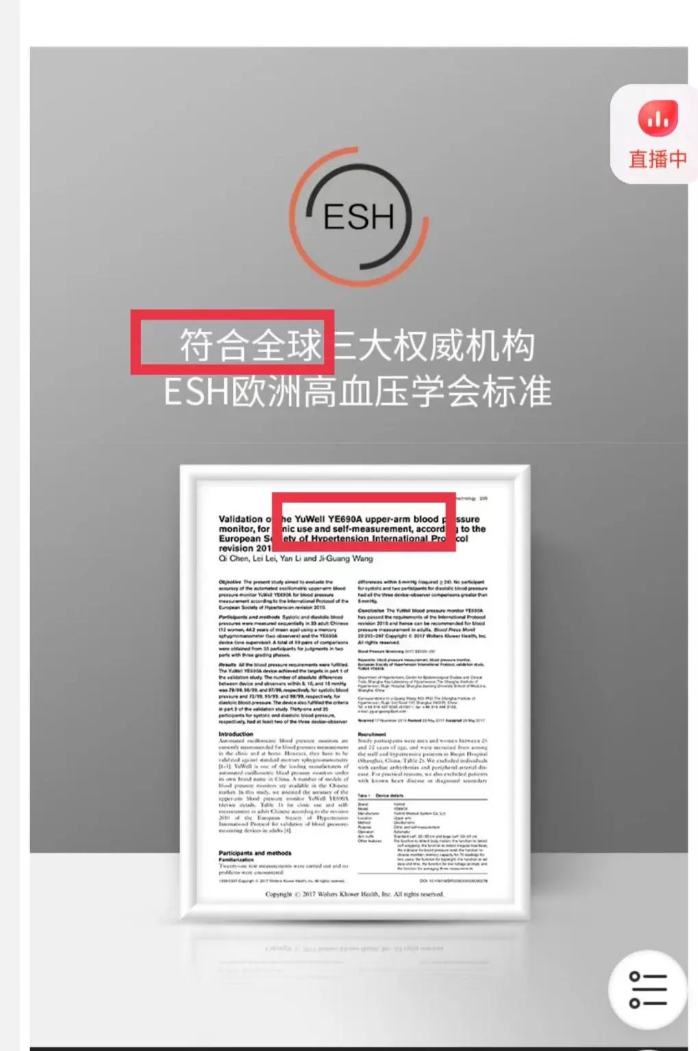 以YE670CR这款电子血压计为例,其在产品宣传页面上着重强调了符合全球三大权威机构ESH欧洲高血压学会标准的字样,并晒出了英文认证证书。不过新浪科技发现,该认证证书中的产品型号并非为YE670CR,而是YE690A。