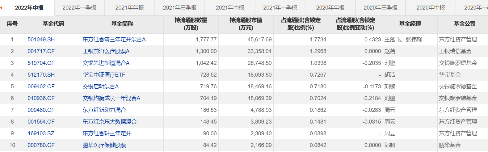 除此之外,东方红新动力灵活配置混合型证券投资基金(000480)、东方红京东大数据灵活配置混合型证券投资基金(001564)、东方红睿轩三年定期开放灵活配置混合型证券投资基金(169103)分别持有鱼跃医疗186.63万股、148.45万股、90万股。至此,上海东方证券资管旗下4只基金产品合计持有鱼跃医疗2202.85万股,按最新收盘价计算,合计持有市值5.9亿元。