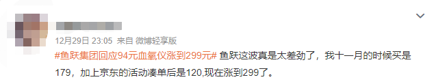 因诸多网友爆料称鱼跃医疗同款血氧仪价格涨幅翻倍,制氧机发货后被私自召回等事件,鱼跃一时被推上风口浪尖。