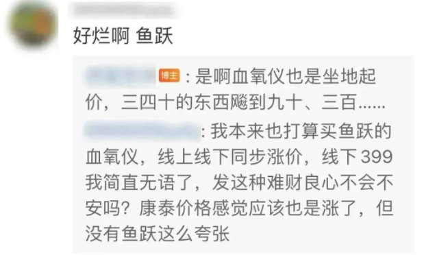 只是有网友发现:“涨价可以,怎么涨得这么离谱?尤其是鱼跃!”