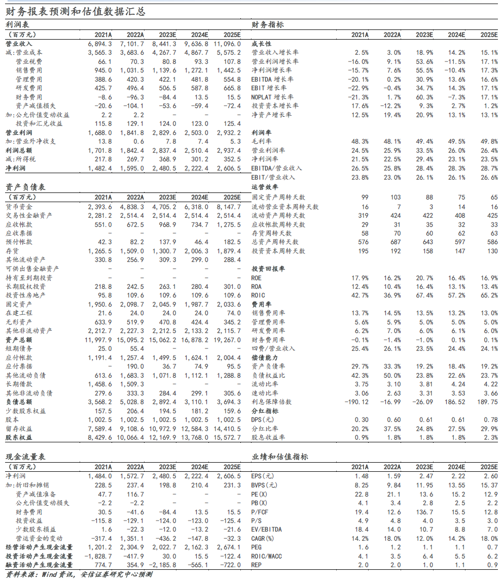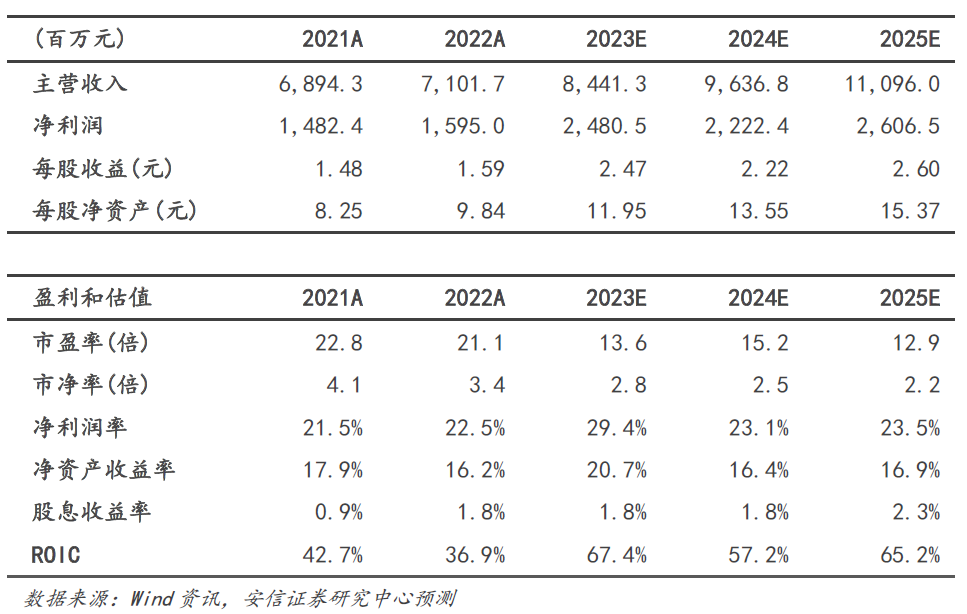 买入-A投资评级,12个月目标价44.34元。我们预计公司2023年-2025年的收入增速分别为18.9%、14.2%、15.1%,净利润的增速分别为55.5%、-10.4%、17.3%;维持给予买入-A 的投资评级,12个月目标价为44.34元,相当于2024年20倍的动态市盈率。