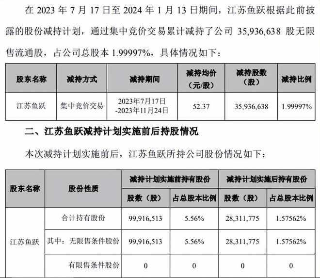 媒体注意到,截至2024年1月17日,云南白药公告称,江苏鱼跃完成减持,在2023年7月17日至今年1月13日期间,其累计通过集中竞价交易累计减持股份3593.67万股,约占公司总股本1.99%,减持事项与此前已披露的减持计划一致。
