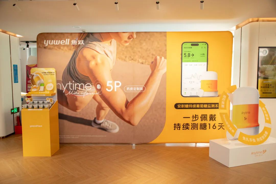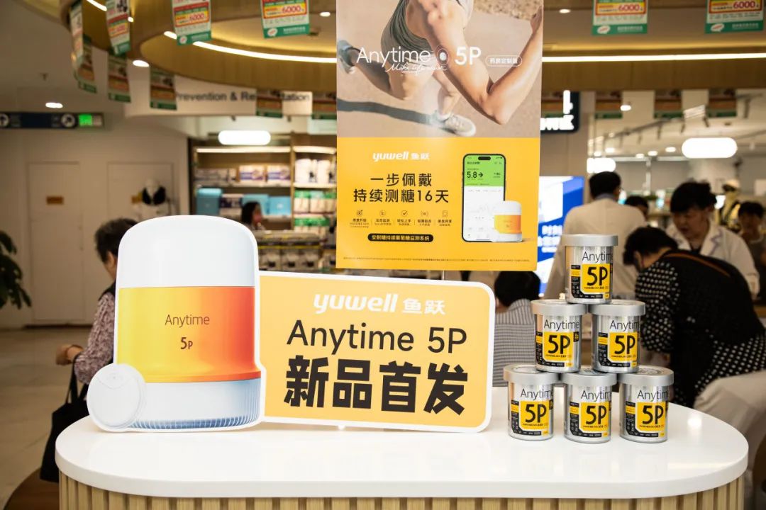 2025年5月29日上午,鱼跃医疗旗下产品“Anytime 5P安耐糖持续葡萄糖监测系统(药房定制版)”于上海市第一医药商店四楼全国首发!