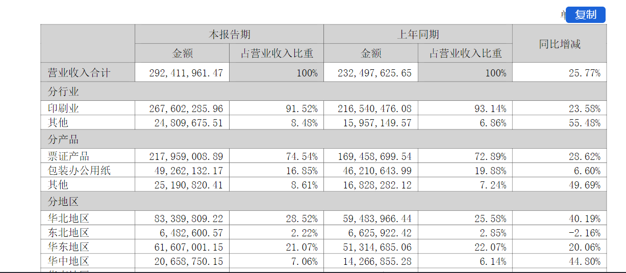 回到主营业务,目前鸿博股份主要从事商业票据印刷,产品收入分为票证产品、包装办公用纸和其他,其中票证产品在公司收入中总体保持着65%-75%的份额。
