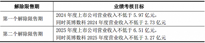 今年年中,鸿博股份曾推出2023年限制性股票激励计划,其中考核目标包括,2024年公司营业收入不低于5.97亿元,英博数科不低于2.73亿元;2025年公司营业收入不低于6.51亿元,英博数科不低于3.27亿元。