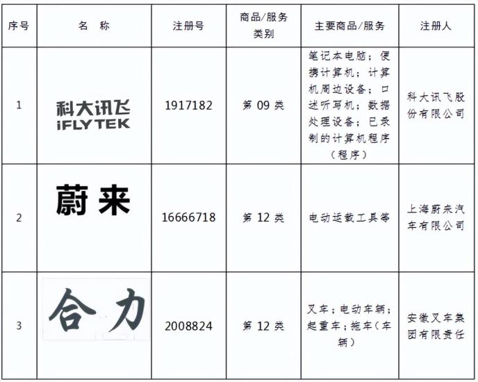 近日,安徽省市场监管局发布第一批安徽省商标保护名录,“科大讯飞(002230)”“蔚来”“精隆电工”“年份原浆”“海螺”等25个商标入选。