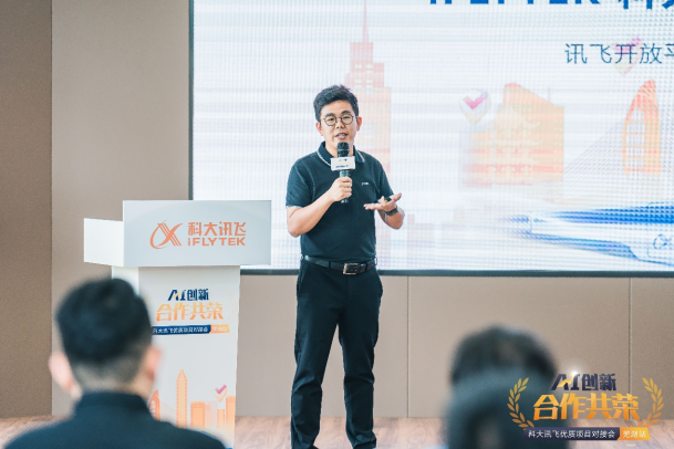 李孔健从核心优势、服务体系建设、产业服务、品牌活动、成果展示等方面,对讯飞生态平台进行了介绍。