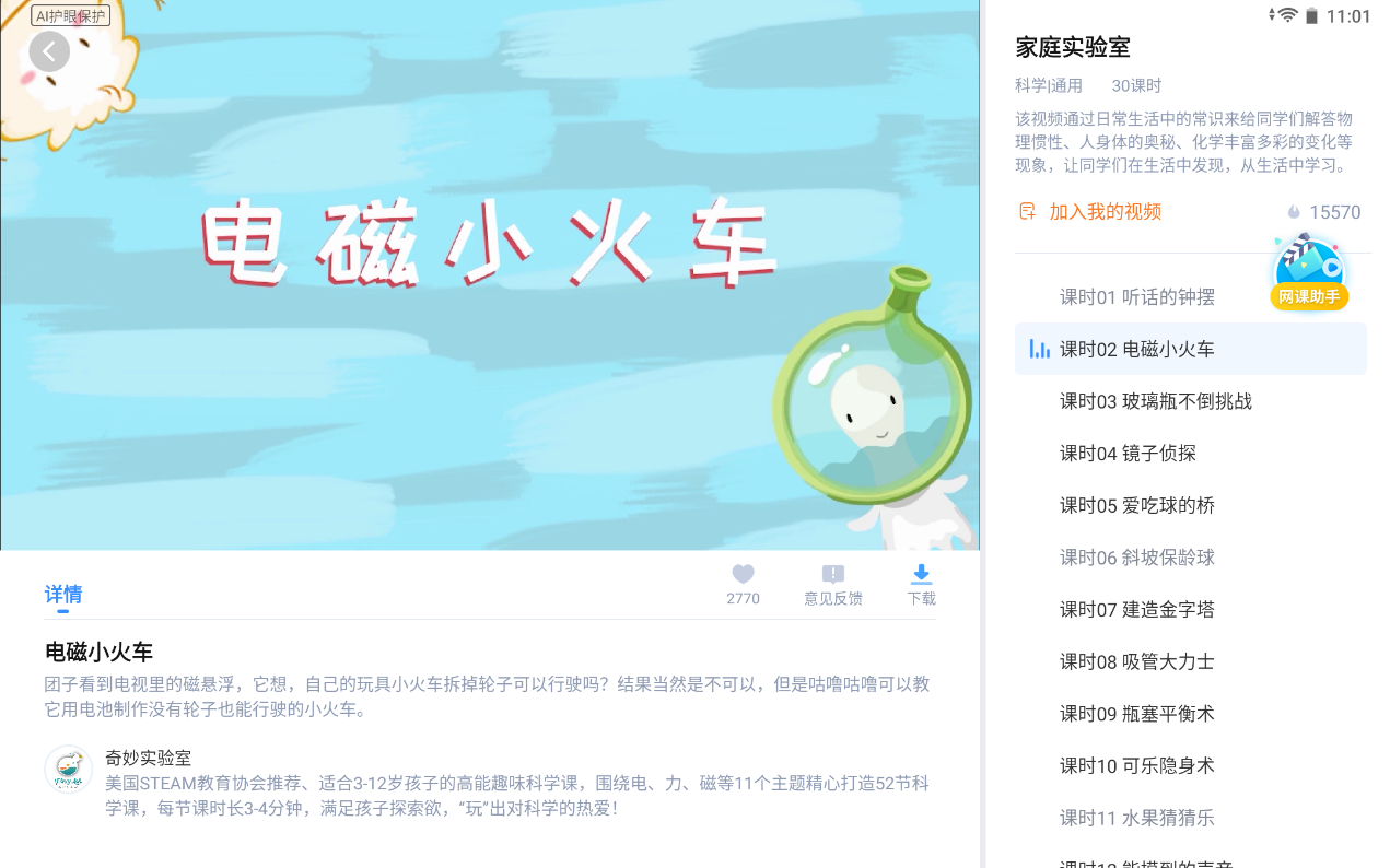 科大讯飞AI学习机在主课学习之外,还提供了很多素质拓展课内容,涵盖美术、书法、体育、编程等课程。其中,科学版块内容十分丰富,设置了星际大穿越、奇妙实验室、家庭实验室、科学同步学等内容。其中,星际穿越带领孩子们了解地球、月球和小行星,共同探索外太空的秘密。家庭实验室则通过观看科学实验视频,动手做实验,探究科学原理。不仅锻炼了孩子的动手能力,更从生活中拉近孩子与科学的距离。