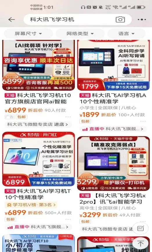话虽如此,截至2023年2月6日,科大讯飞淘宝平台最畅销的T10学习机,月销量为600+,其余学习机产品平均月销量100+。而小度P20学习机达到2000+、希沃W2也达1000+。