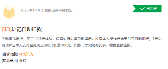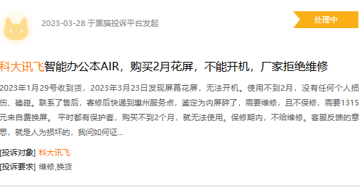 追其原因,一些消费者的投诉声或显露短板。浏览黑猫投诉,截至2023年5月10日21时,科大讯飞相关投诉290条,问题大多集中在质量差、自动扣款、虚假宣传、VIP 会员收费不合理、保修期内不维修等等。如“科大讯飞T10死机”、“录音笔B1质量问题”、“X3pro学习机内屏漏液,拒绝三包”等。