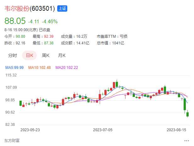 芯片龙头韦尔股份最近也遭遇闪崩,股价连续四天暴跌。