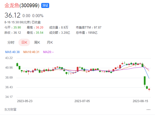 周一,金龙鱼股价跌幅曾一度超过10%,昨天也大跌,股价创下调整新低,距离最高点跌幅超过70%。金龙鱼的最高市值曾高达7861亿,最新市值只有1958亿,蒸发超过5900亿。