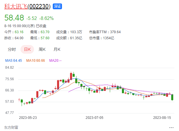 今天,人工智能龙头科大讯飞遭遇资金抛弃,盘中一度跌停,最终收盘暴跌8.62%,股价创近期调整新低,最新市值为1354亿。