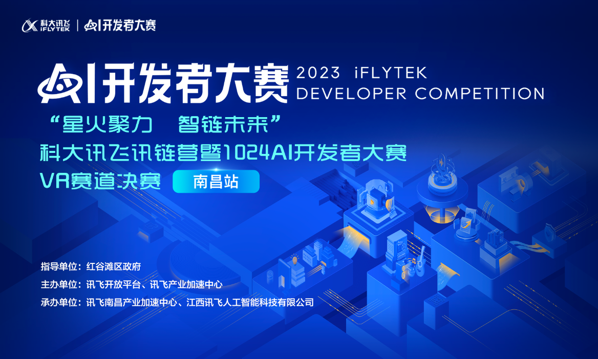 9月20日,由江西省南昌市红谷滩区政府指导,讯飞开放平台、讯飞产业加速中心主办,讯飞南昌产业加速中心、江西讯飞人工智能科技有限公司共同承办的2023“科大讯飞讯链营暨1024 AI开发者大赛VR赛道决赛”在科大讯飞江西总部举办。来自全国200多个开发者团队报名参赛,经过激烈角逐,共有8个开发者团队进入到决赛,活动现场邀请了政府领导、行业专家担任评委专家,与开发者和合作伙伴共同见证最终三甲团队的诞生。