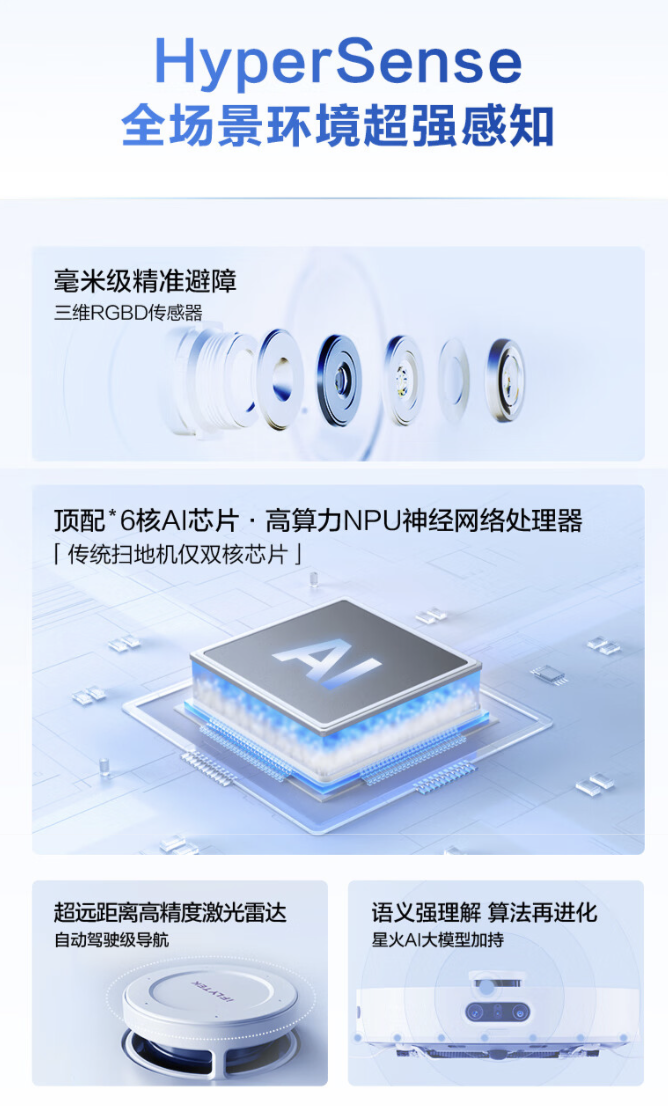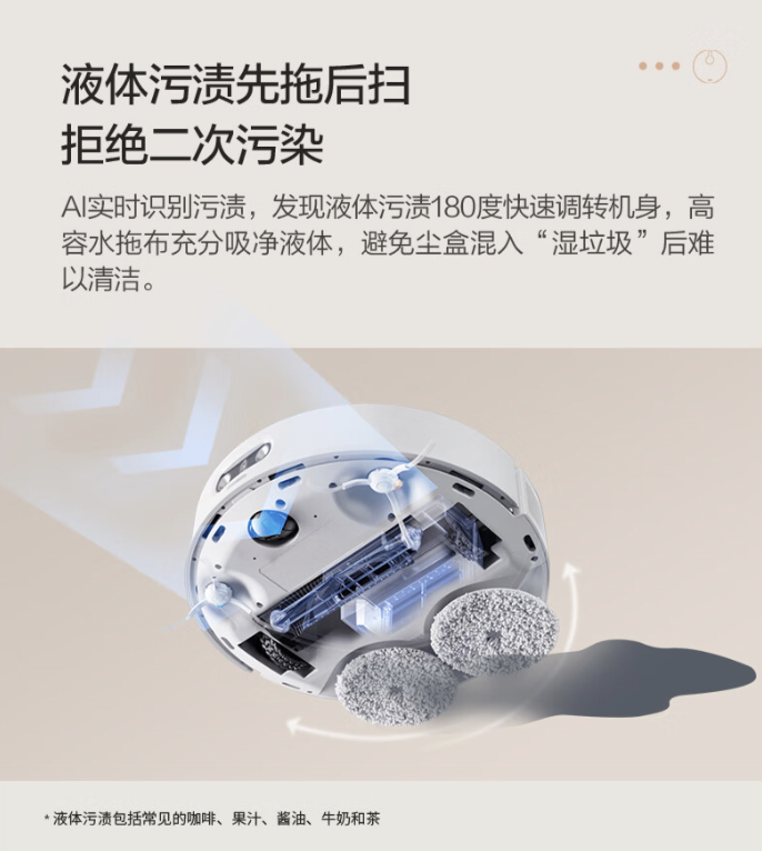 据介绍,这款机器人支持 AI 实时识别污渍,号称可以在发现液体污渍后 180 度快速调转机身,并拥有 iFLYOS 运营操控,号称可以“说哪扫哪”。