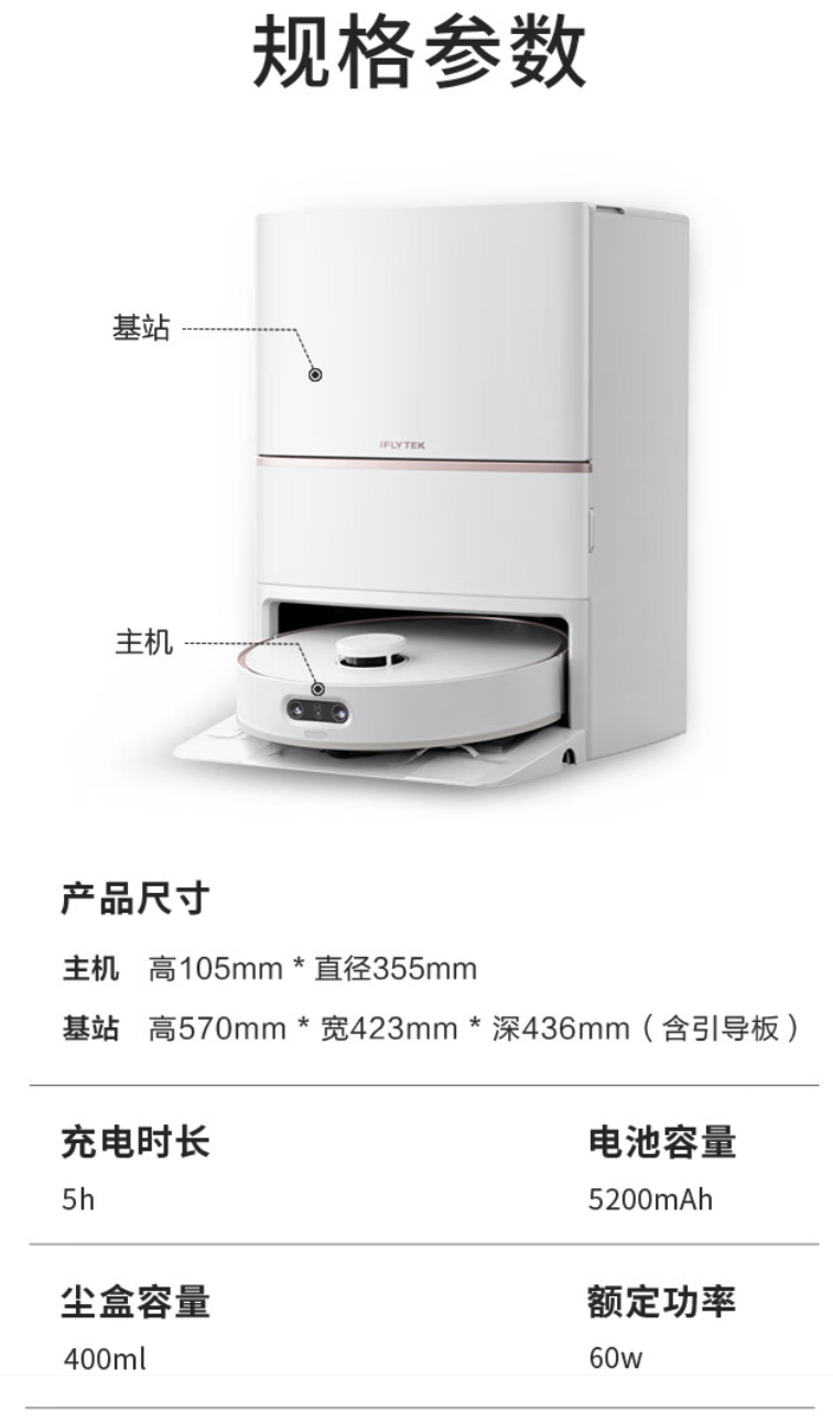 参数方面,这款扫拖机器人内置 5200 毫安时电池,充电时长约 5 小时,IT之家附具体参数信息如下:
