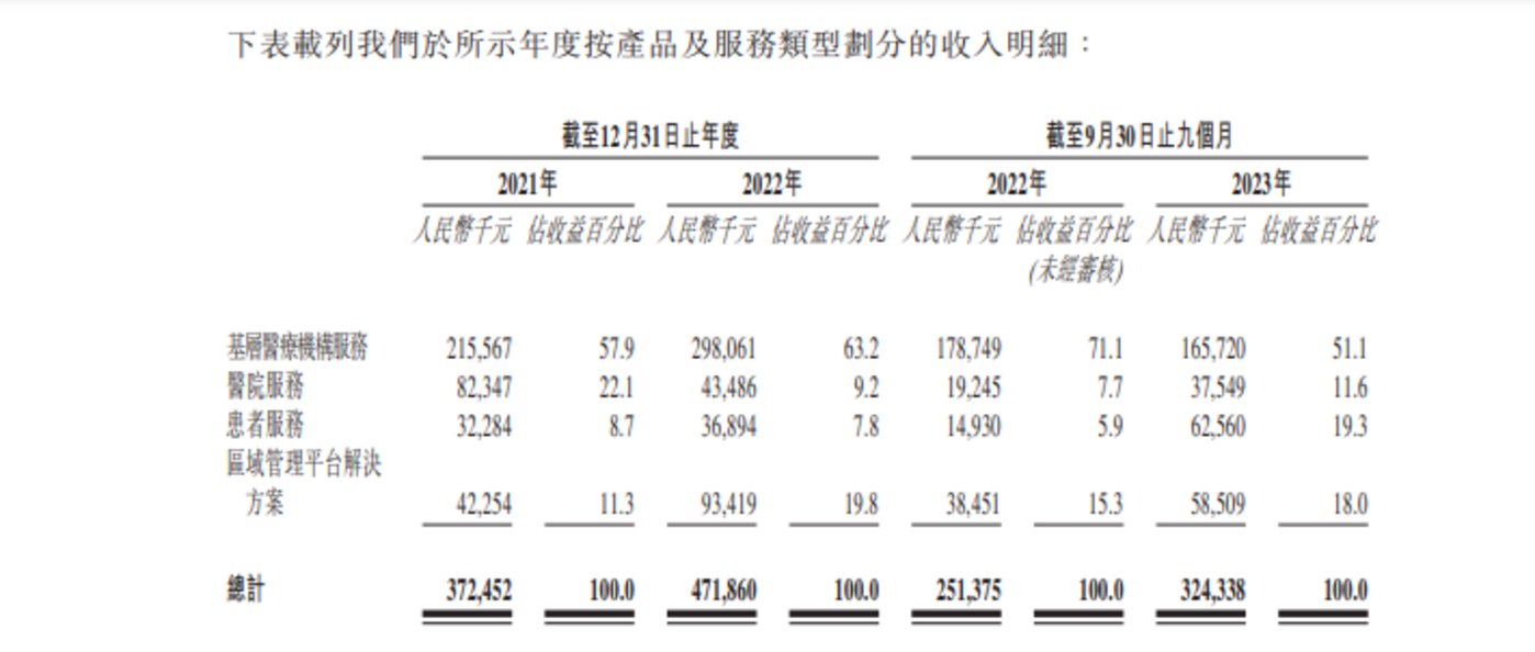 从布局和收入角度来看,讯飞医疗的发力点也放在基层医疗机构。根据招股书,截至2023年9月末,讯飞医疗产品共覆盖426个区县的52000家基层医疗机构,189家三级医院及35家二级医院。