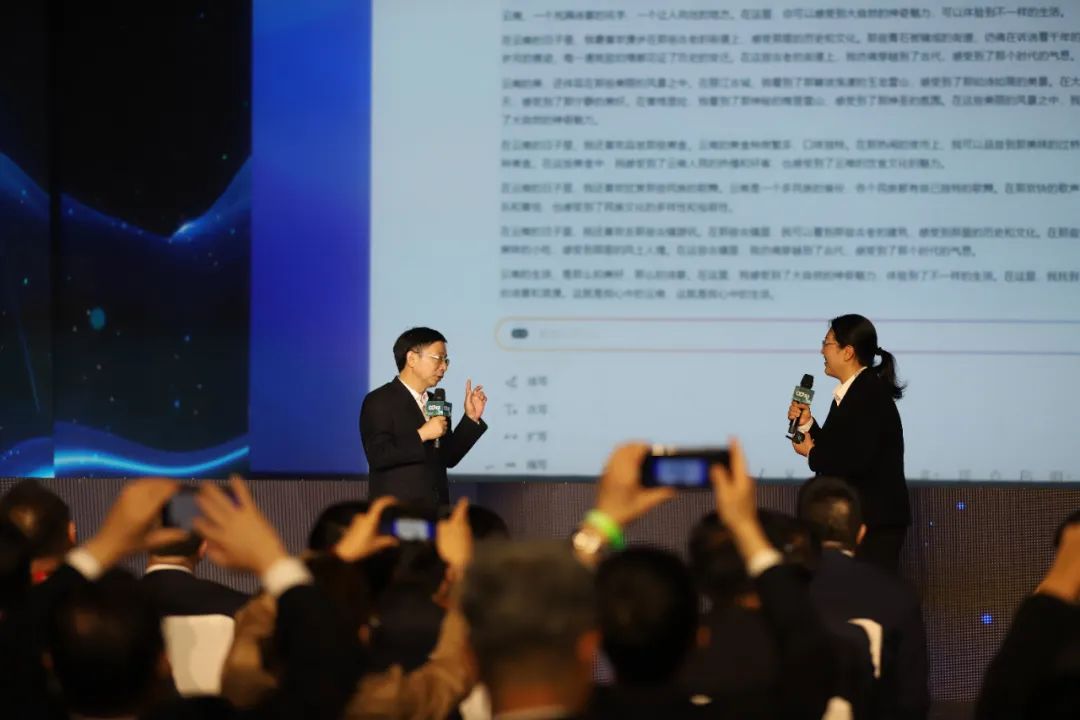 科大讯飞副总裁、听见科技总经理王玮以“讯飞写作赋能新媒体传播”为题发表了演讲,在演讲中,她介绍了讯飞写作产品的最新技术应用成果,还邀请人民日报社云南分社社长朱思雄进行现场互动。朱社长现场以“有一种叫云南的生活”为题让讯飞写作生成一篇散文。话音刚落,只用了五秒钟,讯飞写作就写出了一篇结构清楚、文字漂亮的散文,并获得现场观众的一致惊叹与称赞。