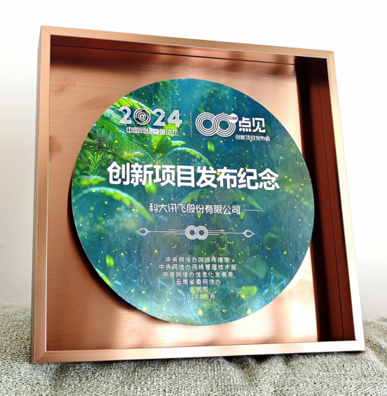 活动最后,科大讯飞荣获“2024年中国网络媒体论坛”创新项目发布纪念奖。