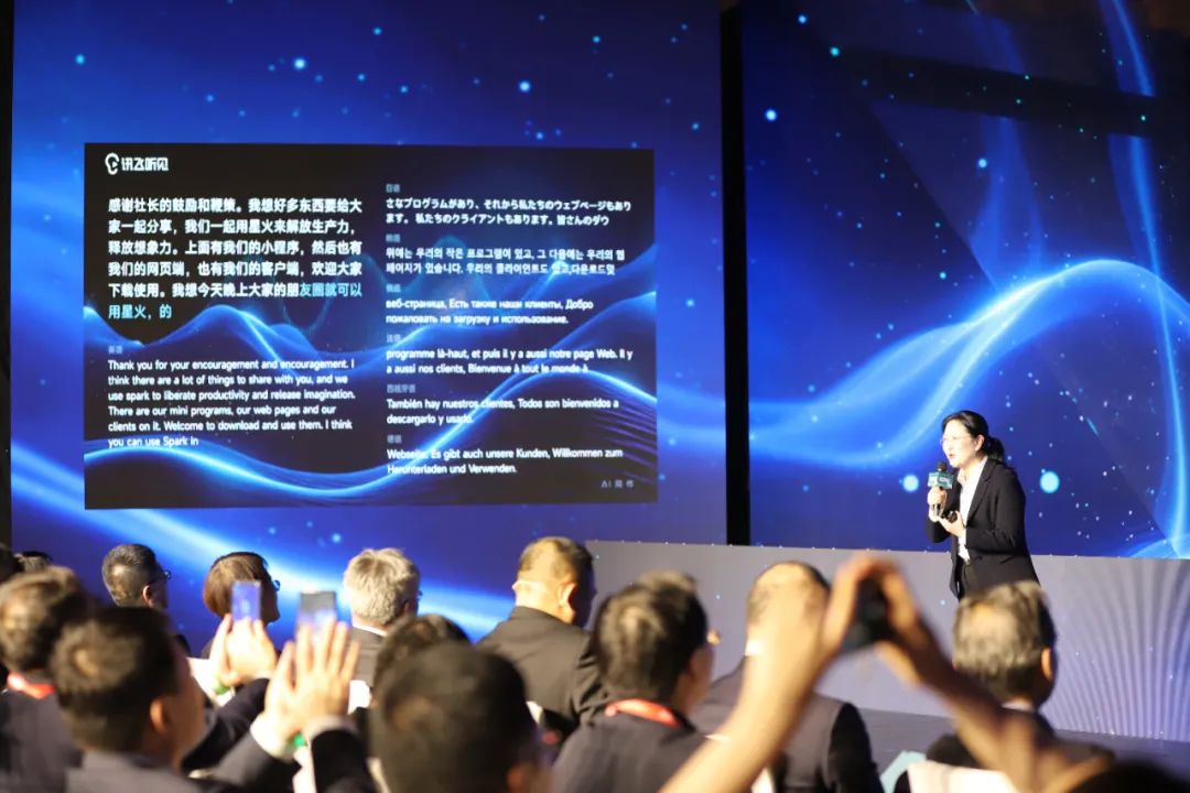 科大讯飞副总裁王玮发表演讲,讯飞同传提供翻译服务