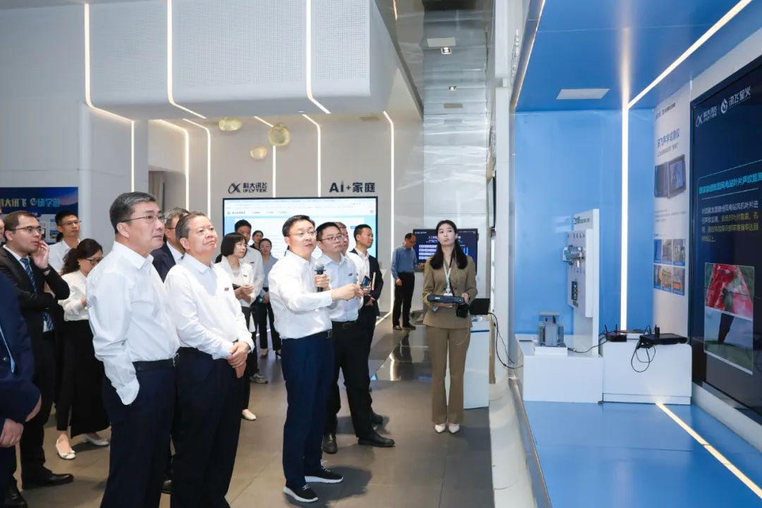 在教育展区,刘庆峰向袁亮一行详细介绍讯飞星火V3.5对教育的赋能,科大讯飞陆续推出了英语口语陪练、百科自由问答、中英作文批改等功能,并落地智慧黑板等产品中。同时,针对青少年心理健康问题发生率居高不下,大模型加持下的AI心理伙伴等应用可显著降低心理问题发生率,助力学校系统性预防学生心理疾病发生。各方还就大模型探索、人才培养等方向进行了热烈讨论。