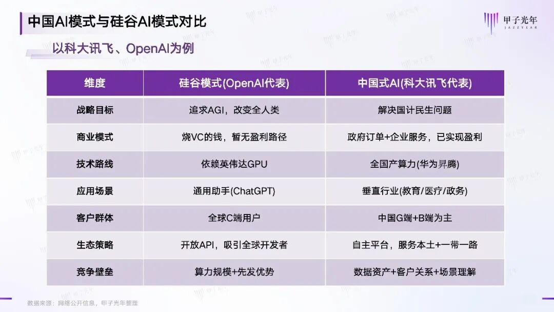 当我们把科大讯飞的战略放在全球AI竞争的大格局中,会发现一个有趣的对比。