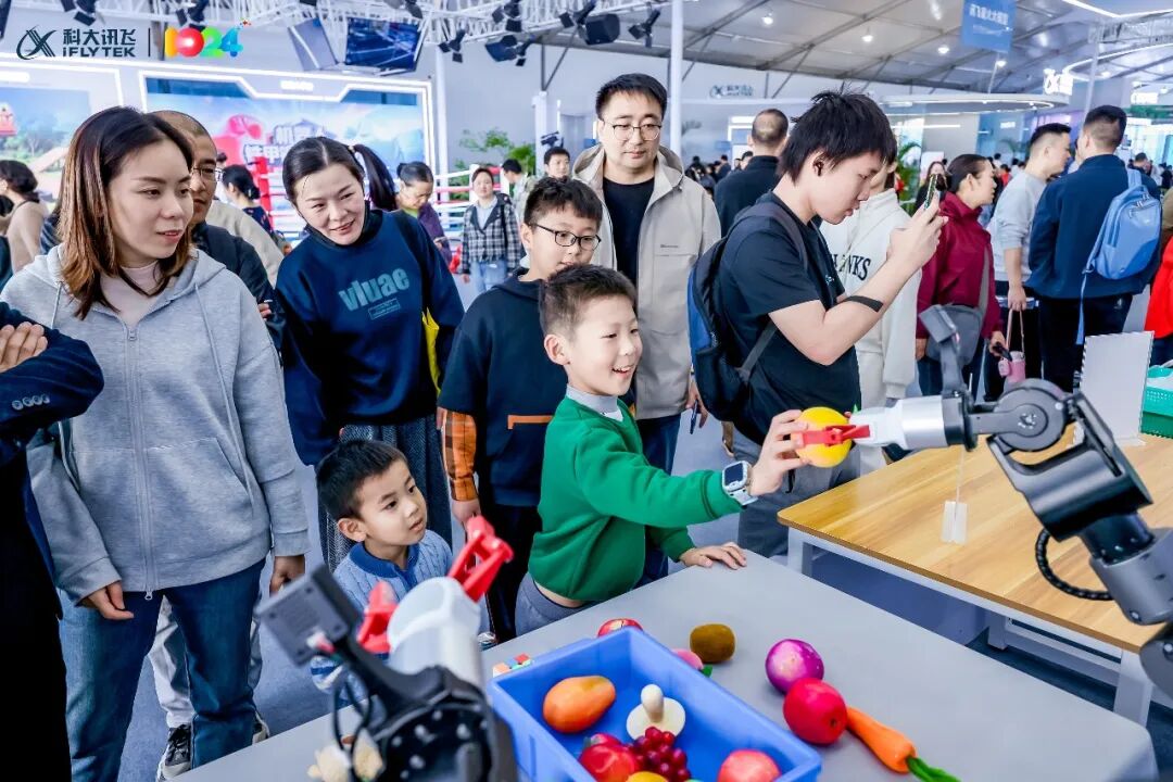 2025科大讯飞全球1024开发者节展区,小朋友与机械臂互动