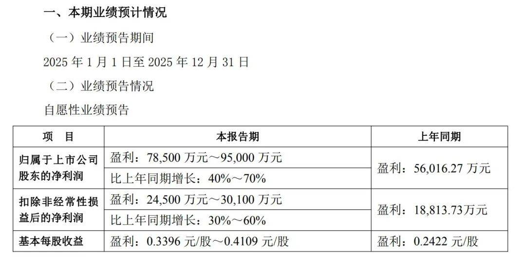 ? 归母净利润:7.85亿~9.5亿元,同比大增40%~70%;
