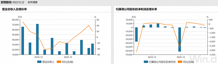 过去五年,安妮股份总体业绩表现并不理想,呈现下坡趋势。