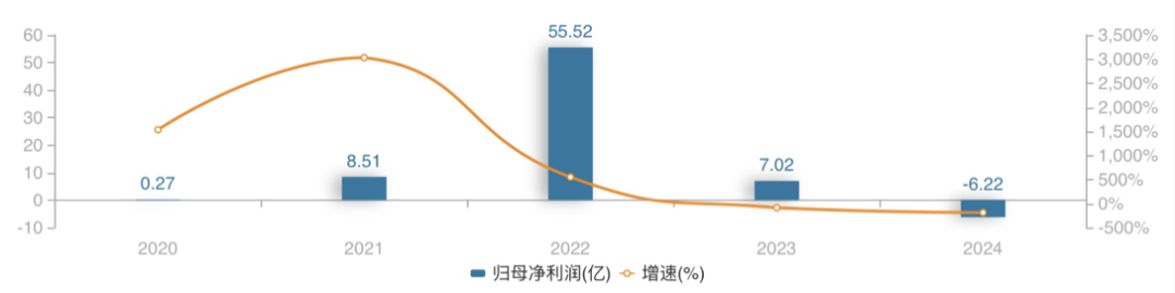 2022年,受益于碳酸锂价格的飙升,盛新锂能年度归母净利润达到55.52亿元,创历史最高水平。此后,受碳酸锂价格下跌的直接影响,公司在2023年和2024年营业收入持续收窄,归母净利润由盈转亏。