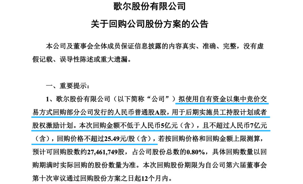 同时,公司发布公告表示,拟斥资5亿至7亿元回购公司股份,用于后期实施员工持股计划或者股权激励计划。