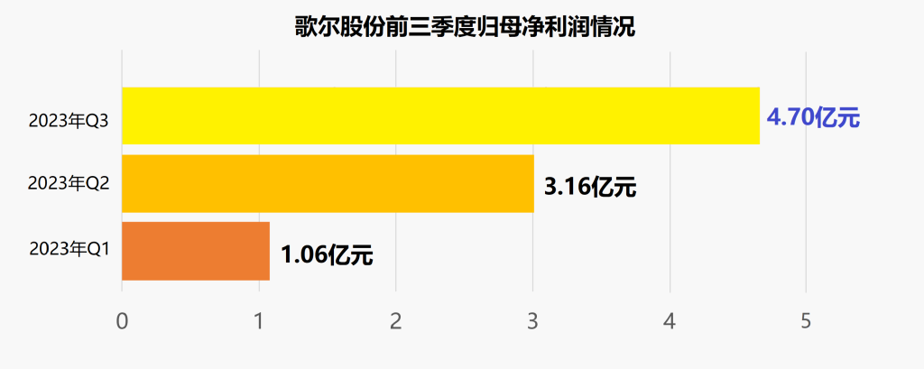 第三季度,歌尔股份实现营业收入287.75亿元,环比增长36.69%;实现归母净利润4.70亿元,环比增长48.73%。