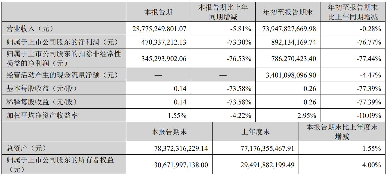 歌尔股份2023年第三季度营收为287.75亿元,同比降5.81%;净利为4.7亿元,同比降73.3%;扣非后净利为3.45亿元,同比降76.53%。