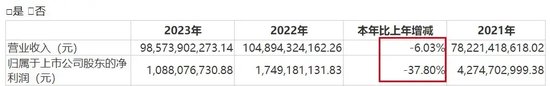 归母净利润甚至不如2019年的水平。2023年,其归母净利润较2022年下挫37.80%至10.88亿元,甚至比2019年的12.81亿元还要低15%。
