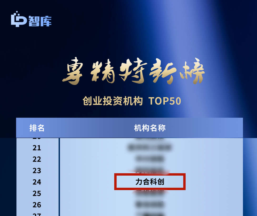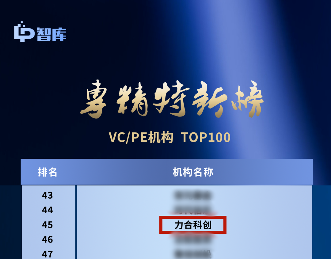 力合科创入选“专精特新榜”创业投资机构TOP 50