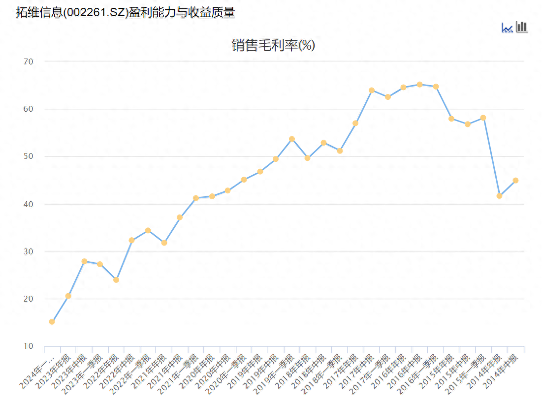 从拓维信息披露的毛利率来看,该公司毛利率呈下降趋势。