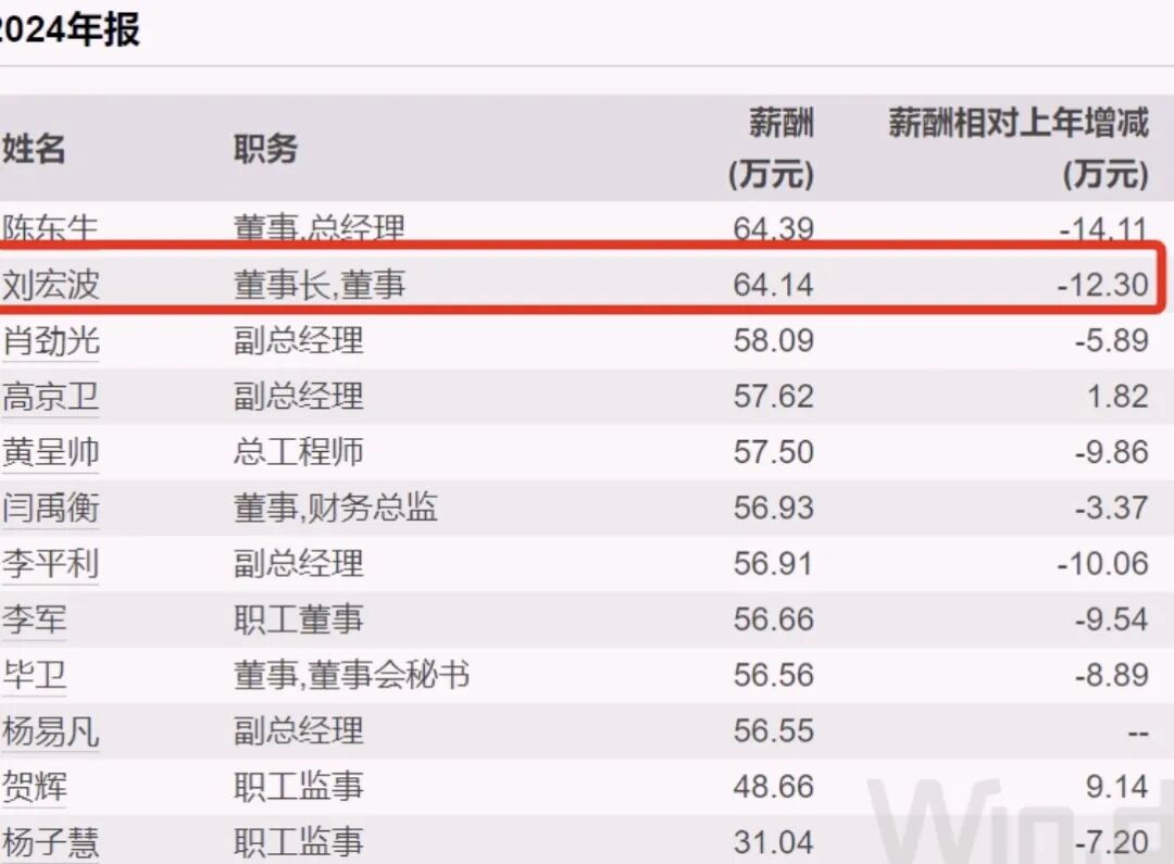 追溯历年数据,刘宏波的薪酬呈现波动上升趋势:2021年为48.64万元,2022年升至59.48万元,2023年达到76.44万元,2024年回落至64.14万元。38万元这一数字可能来源于早期年份或误传,公开可查的最近完整年度(2024年)薪酬为64.14万元。