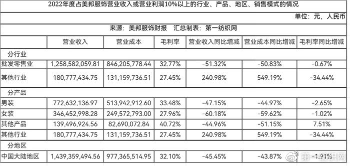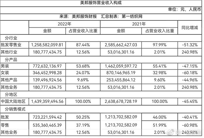 财报也显示,2022年度,美邦服饰实现营业收入14.39亿元,同比下降45.45%;归属于母公司的净利润亏损8.23亿元,与上年同期亏损4.02亿元相比下降75.64%,对于业绩亏损的主要原因,美邦服饰解释称,公司总部及全国唯一物流中心均设立在上海浦东,2022年上半年因公司物流无法正常发货,对公司销售收入带来较大的负面影响。