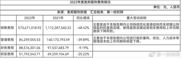 对此,美邦服饰一是全面深度调整线下渠道,关闭大量传统商圈亏损店铺,收入与销售费用均大幅下降;二是集中经营资源重点围绕三至五线市场发展加盟渠道,整合发展电商渠道业务;三是深入优化组织结构与资源配置,合力形成以绩效考核、价值创造为导向的组织文化;四是持续加大存货处理力度,降低库存占用。截至2022年末,公司服饰存货账面价值为7.36亿元,较上年末下降34.38%。