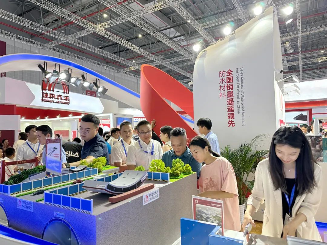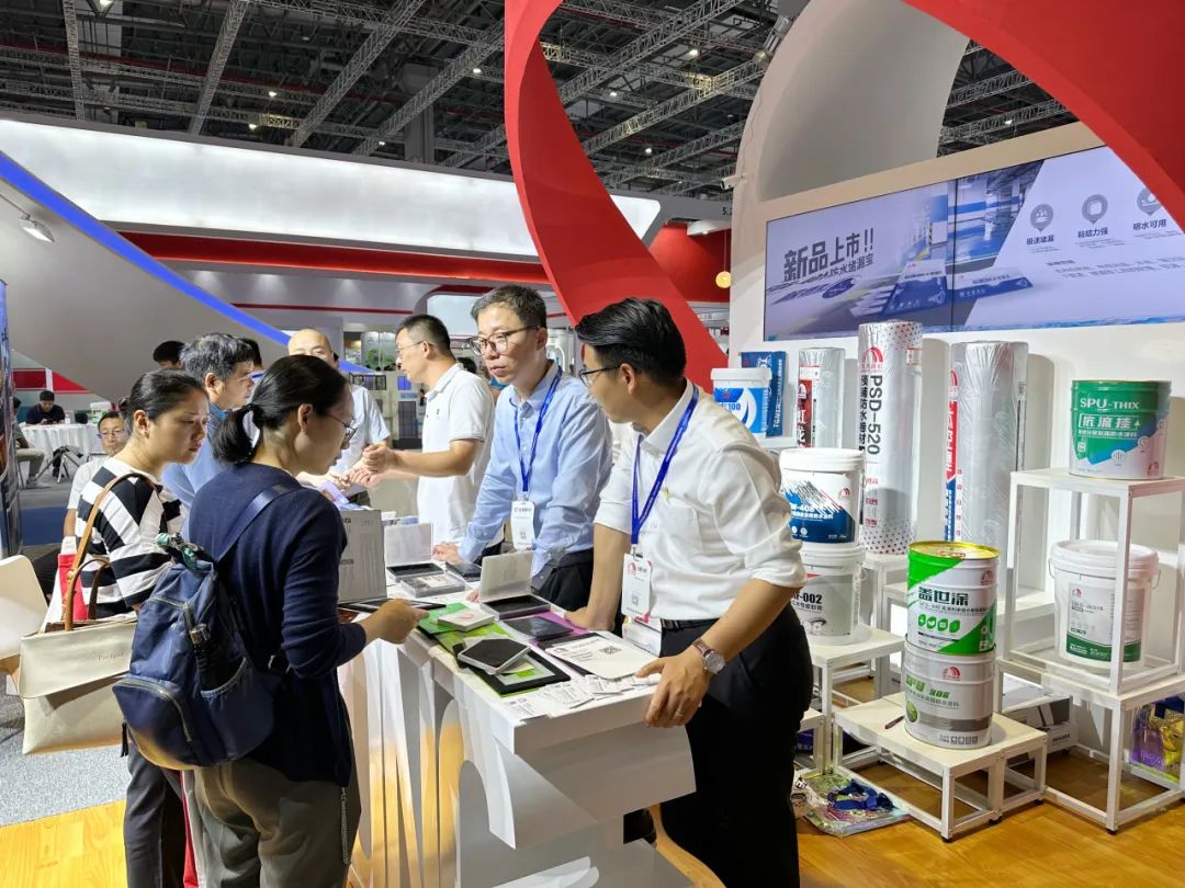 此次东方雨虹展位整体风格时尚大气、细节精美,在产品展示、陈设布局上充分体现出企业雄厚的科技创新综合实力。展位内设业务洽谈区、视频区、展示区等多个区域,吸引来自全国各地的众多行业专家、展商、客户驻足观摩、洽谈咨询。期间,工作人员针对各参展产品、系统的性能特点、核心优势、应用场景等方面进行现场讲解,赢得连连好评、称赞不断。